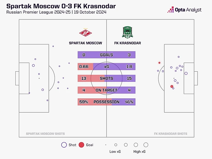 По итогу Краснодар деклассировал очередного конкурента. Даже по цифрам видно, что быки полностью переиграл своего соперника.