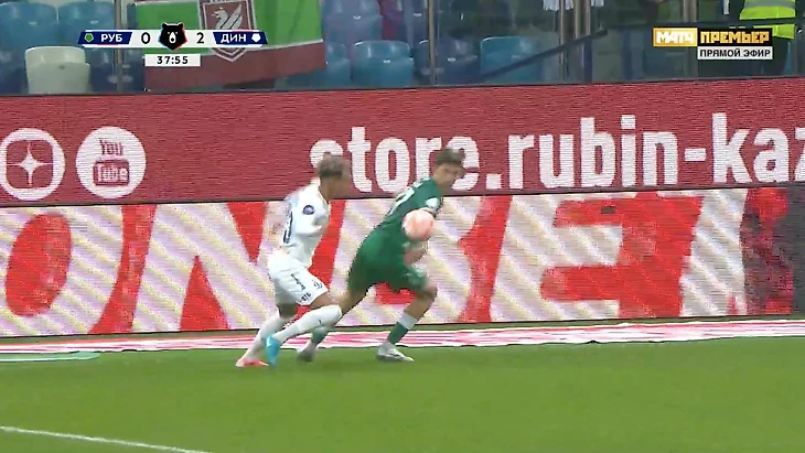 «Динамо» вышло вперед уже на 5-й минуте – и сразу пенальти. Даниил Фомин рухнул в штрафной «Рубина» после удара по ногам от Велдина Ходжи.