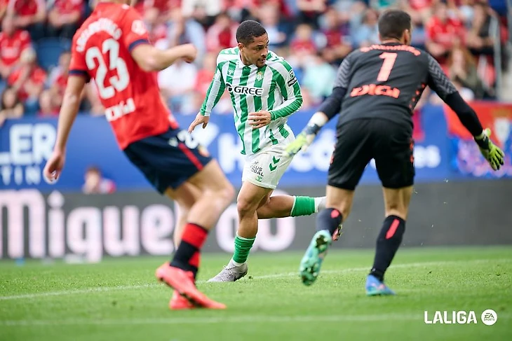 Гости быстро открыли счёт, усилиями Витора Роке, за которого я лично очень рад. Во втором же тайме хозяевам удалось сравнять счёт, но только на 15 минут. Чими Авила смог снова вывести «зелено-белых» вперёд. Не всё так красочно кончилось для гостей, ведь уже в компенсированное время Натан, арендованный у «Наполи», схлопотал прямую красную карточку. Тем не менее «Бетису» удалось повысить кол-во очков до приличных 15-ти. Кстати, ровно столько же и у «Осасуны».
