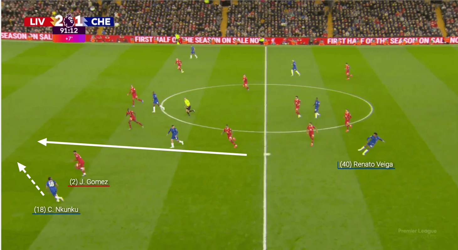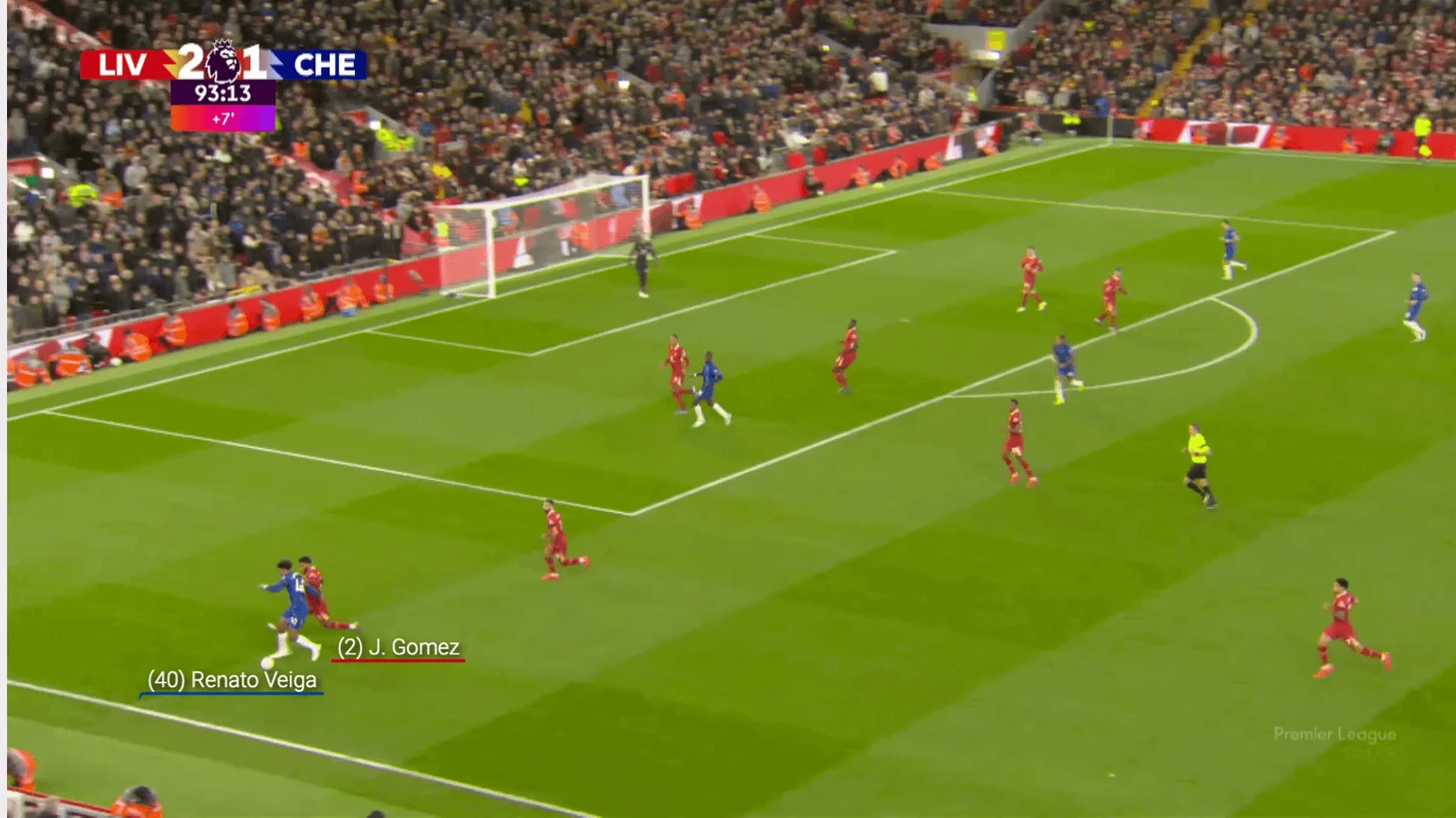 Пройти «Челси» в воскресенье было более суровым испытанием. Ограничение моментов и ударов по воротам было главной целью в заключительном периоде, но на 93-й минуте Ренато Вейга пробил головой после штрафного, который пролетел над перекладиной, но вполне мог проскочить и под ней. Энди Робертсон также бросился на поздний удар после того, как «Челси» предпринял последний штурм после странного решения присудить гостям фол после того, как нападающий «Ливерпуля» Дарвин Нуньес плечом к плечу столкнулся с Вейгой.