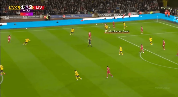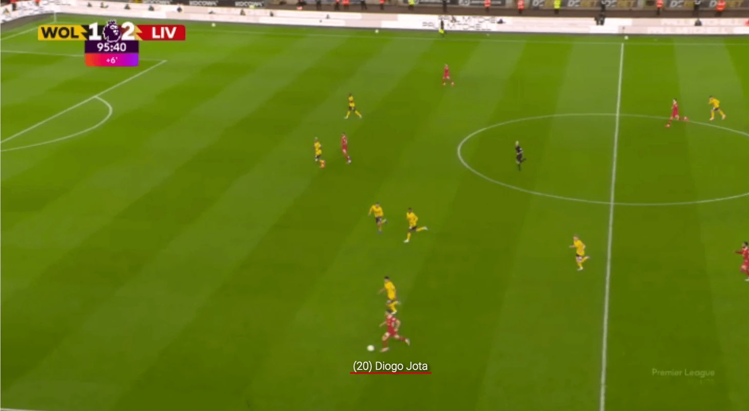 В довершение всего, как показано ниже, Диогe Жота выбил мяч в аут, предоставив Волкам последнюю возможность, которая, к счастью для «Ливерпуля», не была использована.