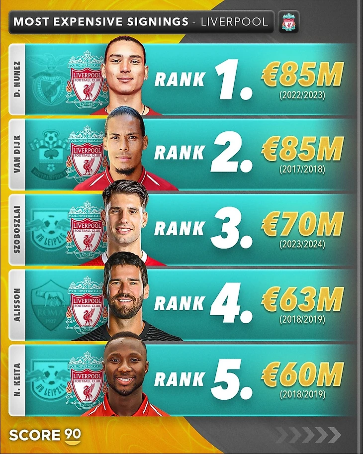 Специализированный портал Score 90 собрал топ-5 самых дорогих приобретений ряда европейских грандов.