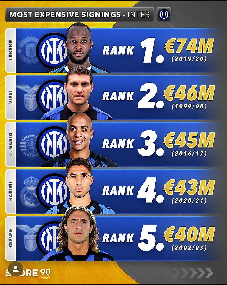В «Интере» неплохо распоряжаются финансами, а кроме того, нельзя не отметить, что стоимость даже самых дорогих трансферов итальянского гранда существенно ниже, чем у вышеперечисленных клубов.