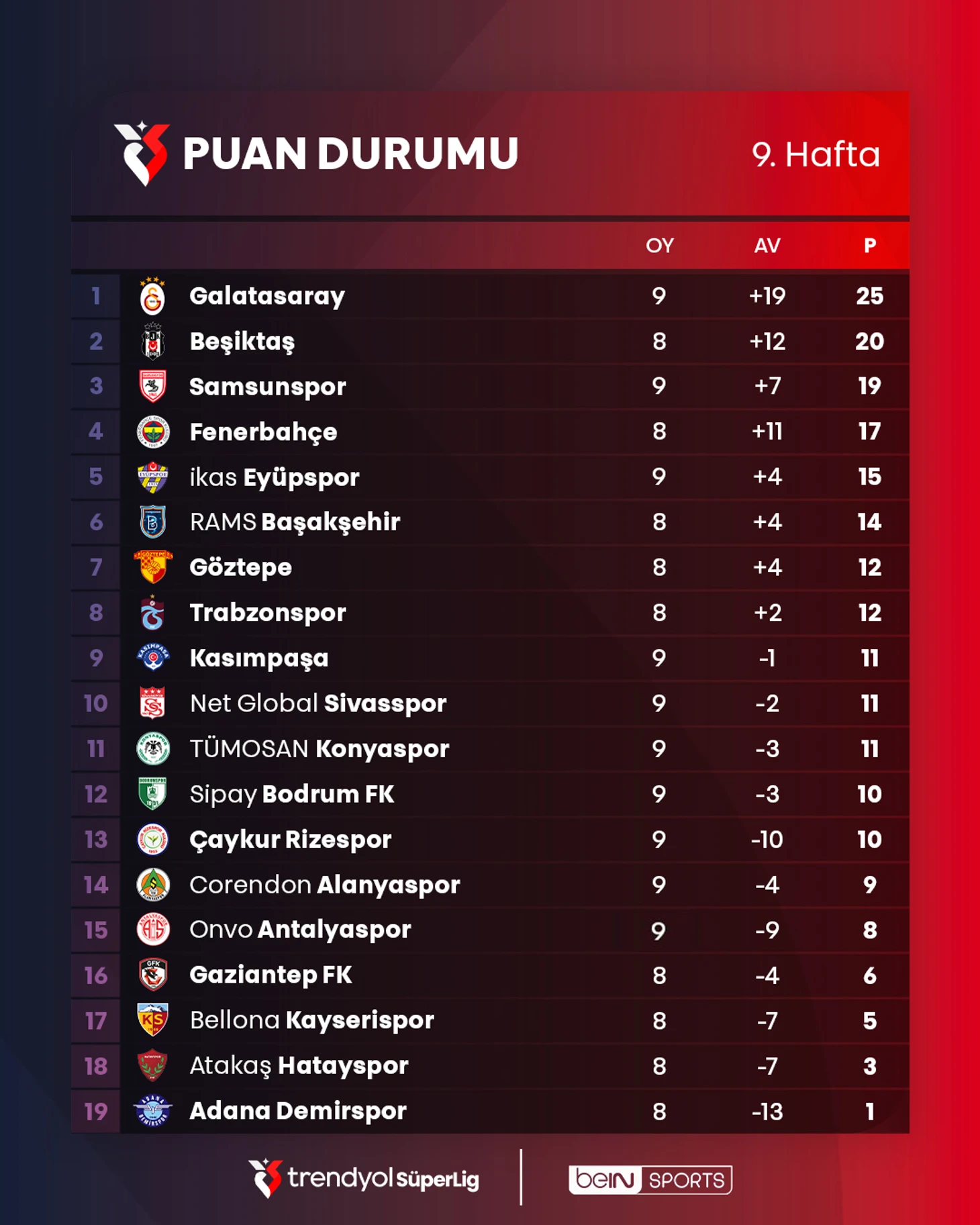Турецкая Супер Лига вернулась после международной паузы. В девятом туре мы наблюдали за схваткой лидеров (и если «Фенербахче» своим присутствием среди ее действующих лиц не удивляет, то «Самсунспор» – что-то новенькое), последней игрой «Галатасарая» перед тяжелейшим отрезком, главным претендентом на гол сезона в исполнении Виктора Осимхена и посредственностью в исполнении «Хатайспора».