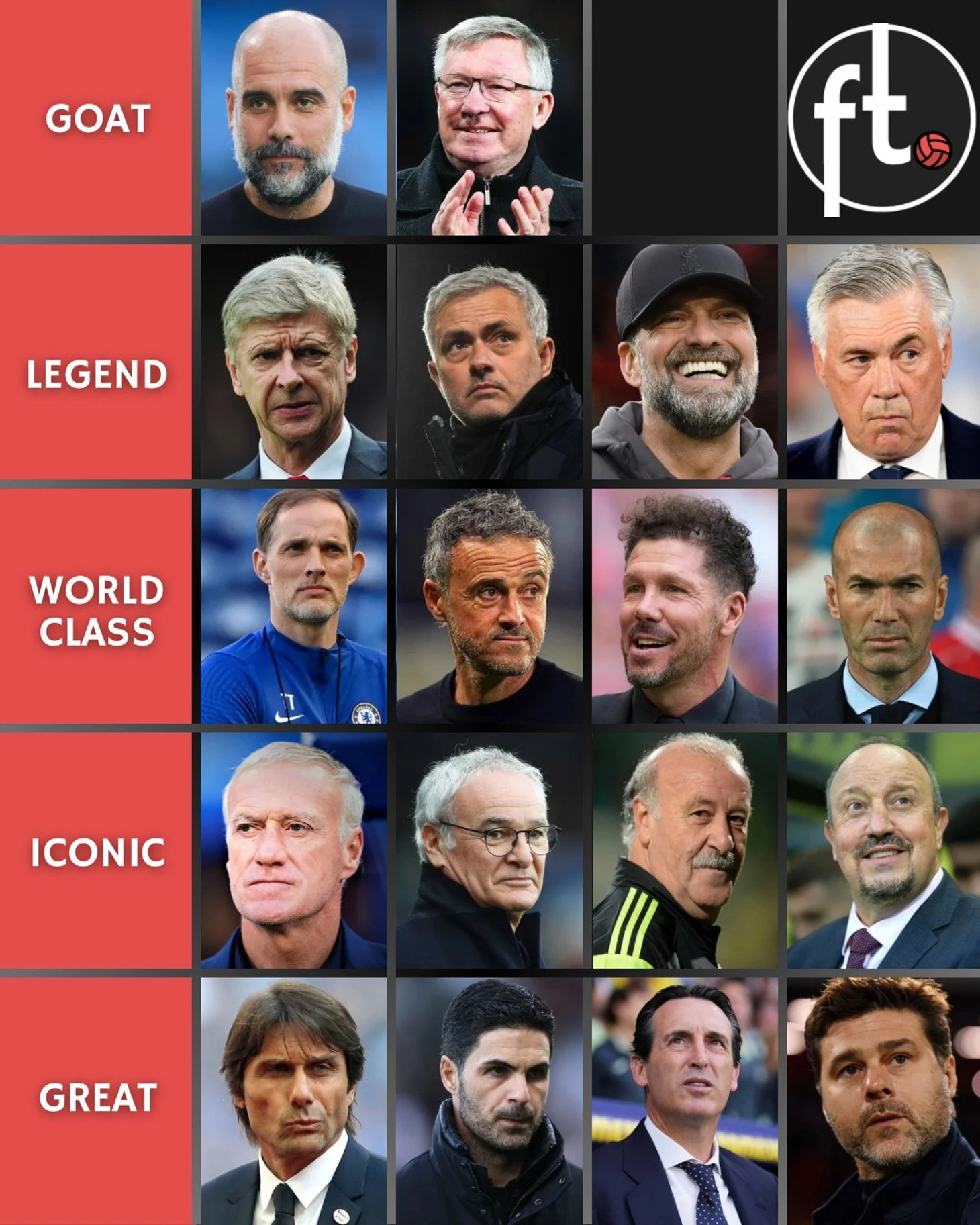 В категорию GOAT (лучшие из лучших) попали двое: Пеп Гвардиола и Алекс Фергюсон.