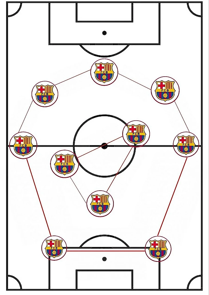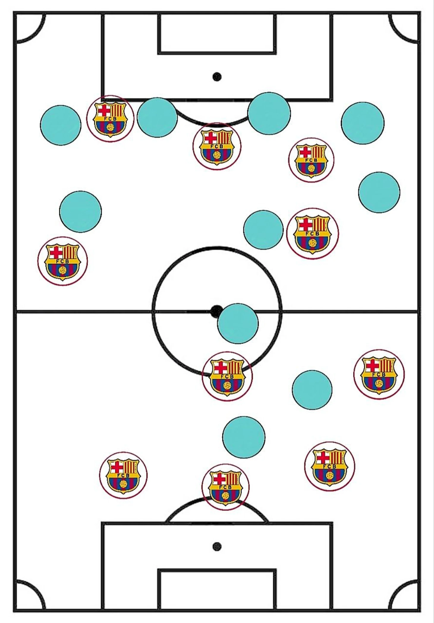 В свою очередь соперники, старающиеся перекрыть линии передач центрбэков «Барсы» в первой фазе, сталкиваются с этой проблемой в не меньшем объеме — из-за постоянного, в какой-то степени не осмысленного движения атакующей группы из 7-8 человек, оборонительному блоку соперника приходится прибывать в постоянном горизонтальном движении, что ведет к ошибке в построении, появлению свободного коридора для передачи и, опять-таки, пропущенному голу.