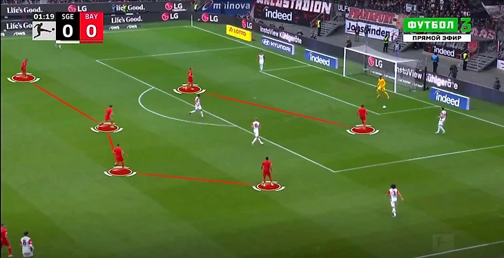 «Бавария» попросту не выпускает соперника дальше середины поля. Все благодаря невероятному по интенсивности и высоте прессингу.