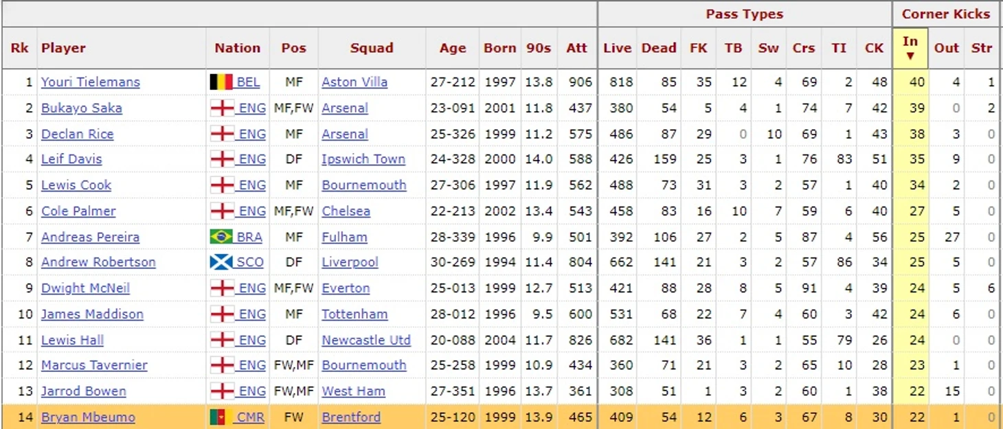 Мбемо и раньше немало забивал – по 9 голов в АПЛ 2022/23 и 2023/24. В этом же сезоне он выдает сезон жизни, забив уже восемь голов в 14 играх:
