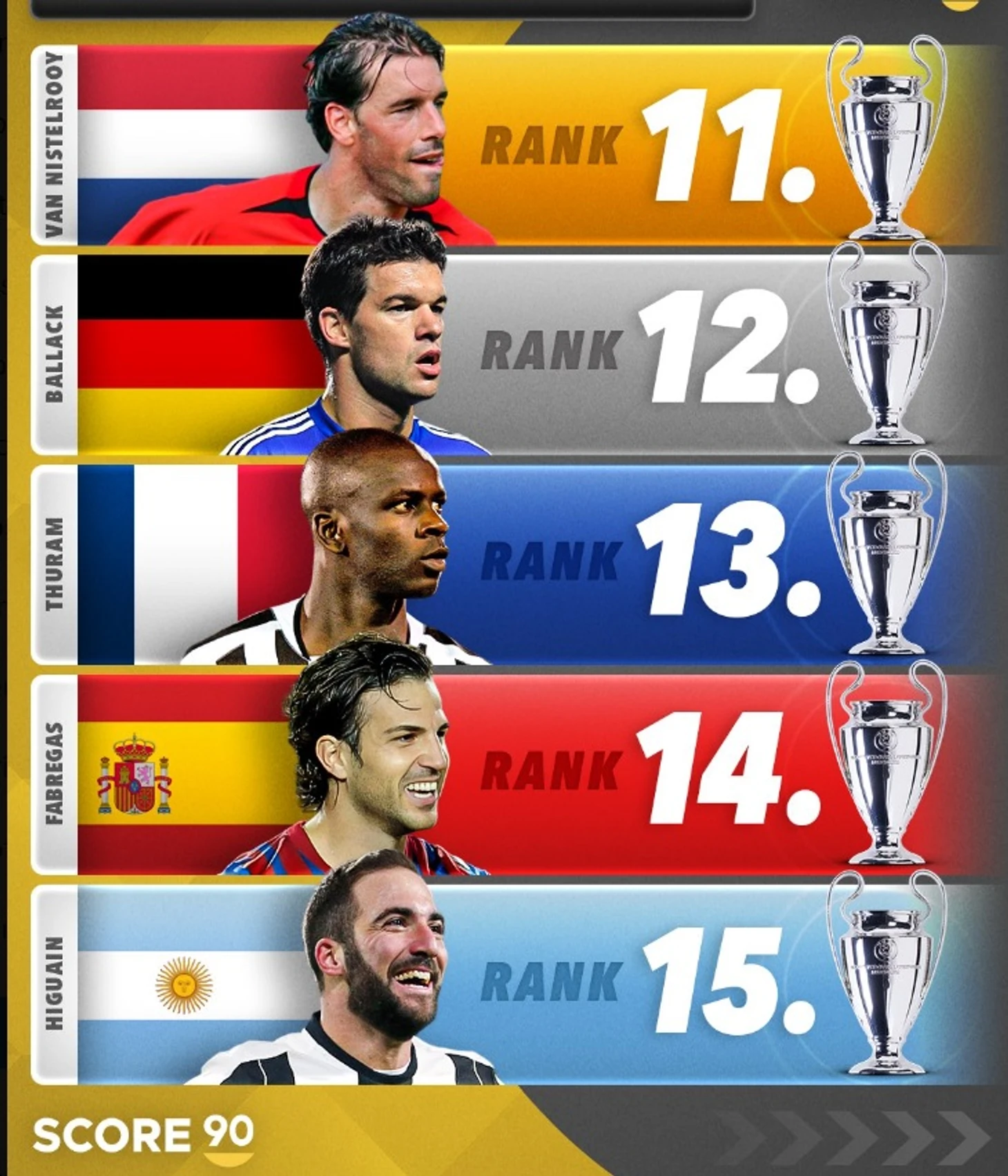Специализированный портал Score90 составил список из 15 легендарных футболистов XXI века без легендарного трофея в активе.
