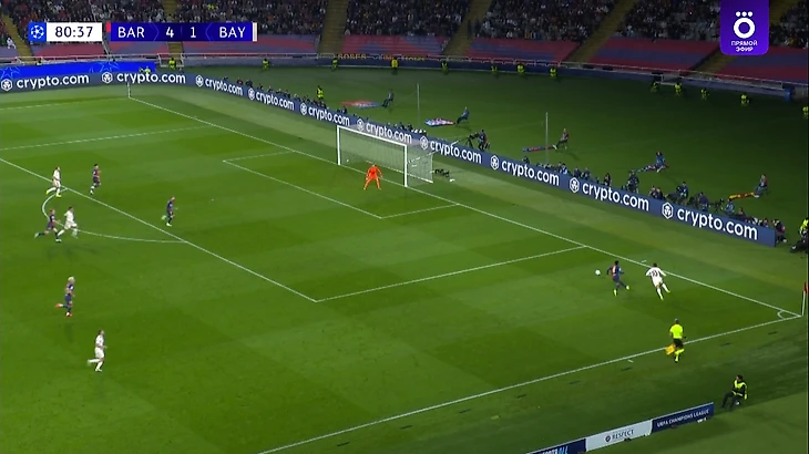 Внимание, сразу веселые цифры: за первые 5 минут матча было совершено 5 забросов. Из них 3 сделала «Бавария» в никуда, 1 сделала Бавария неплохой и 1 сделала «Барселона» голевой (очень условно там заброс, конечно, но как факт он есть). И вот что-то подобное продолжалось весь тайм. Флик с Компани просто решили выдать максимум по высоте линий обороны.