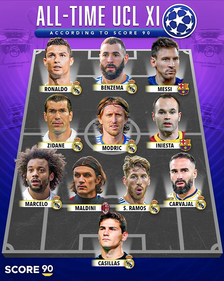 Перед вами сборная лучших игроков в истории Лиги чемпионов (по версии портала Score90).