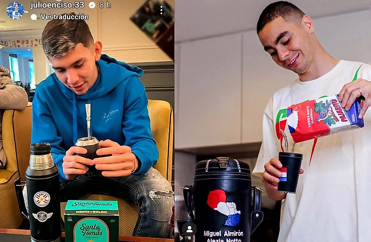 Естественно его пьют и в Парагвае, на родине мате, но, так как в «Ливерпуле» нет (и никогда не было) игроков из этой страны, то сгодятся ребята из Парагвая в АПЛ на сегодняшний день — Хулио Энсисо и Мигель Альмирон (а еще новички этого года Энсо Гонсалес и Рамон Соса, фото которых с мате я не нашел).