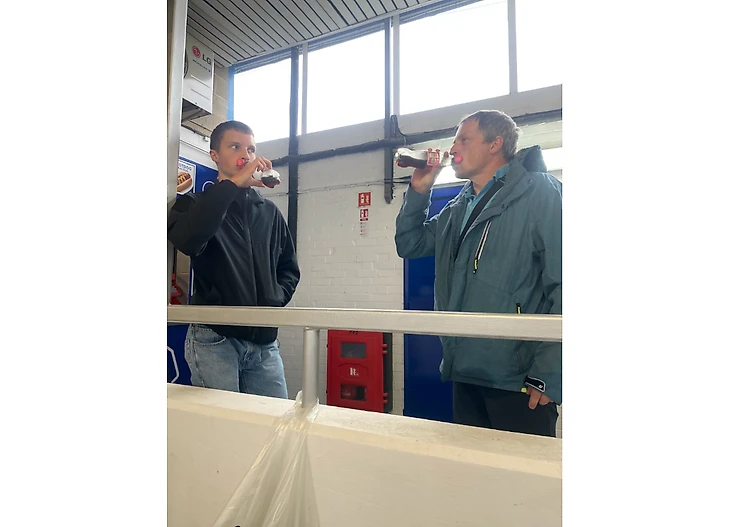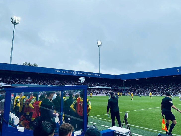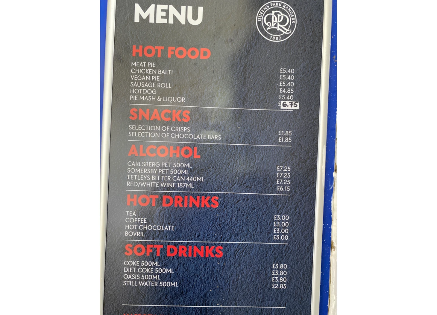 Подтрибунка на Лофтус Роуд абсолютно мизерная, прижимаясь к бокам люди пьют своё пиво, колу или уплетают хот дог в ожидании матча. За окном всё также виднелся дождь. Подслушав мельком пару разговоров и сфоткав отца с сыном, двинул на сектор.