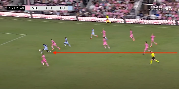 Молодой человек, как безумный, бегал от игрока к игроку, иногда прибегал на чужой фланг, иногда пытался создавать давление на соперника которого УЖЕ прессингует напарник по команде... Через 30 минут случилось предсказуемое - Тьяре выдохся... Про защиту «Атланты» нужно поговорить отдельно. Это какой-то непроглядный мрак... Если возвращаться к той же компьютерной игре, то игроки обороны ведут себя так же как боты в самой легкой настройке. Если соперник стоит с мячом они не подходят к нему, чтобы отобрать игровой снаряд, они В ЛУЧШЕМ случае просто находятся от него в трех метрах и СМОТРЯТ... В худшем случае они пятятся назад сталкиваясь друг с другом и ломая все линии оффсайда...