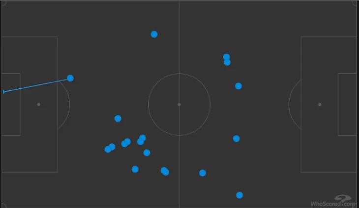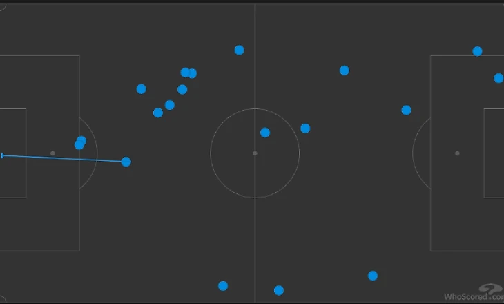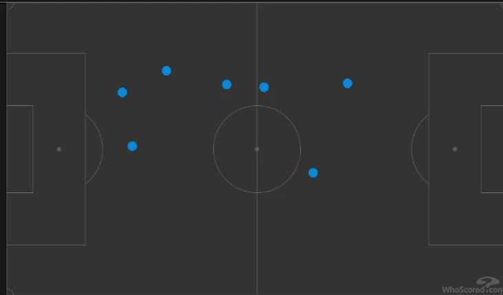 Игроки Барселоны же с этим не определились и объективно более слабую правую сторону будто избегали – поддавались сопернику. Вот, например, карта касаний Фермина на позиции десятки.