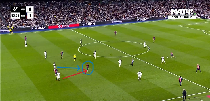 Не на 0:4 игра. Да, Барселона много создала и победу заслужила, но на поле точно не было доминирования. Матч получился классный, впечатлений и наблюдений очень много, но в этом достаточно коротком материале выделю главное из них, связанное с одним конкретным человеком. Эдер Милитао до травмы «крестов» был одним из лучших защитников, но после восстановления набрал форму далеко не сразу. К нынешнему сезону он частично вернул кондиции, но все еще не добрался до занимаемой ранее вершины. Вчера против него были обстоятельства, но он и сам допускал ошибки. Хорошее тоже всплывало, так что вокруг бразильца крутилось очень многое в матче. Рассмотрим игру через конкретную персону, или даже конкретное явление, конкретную зону.