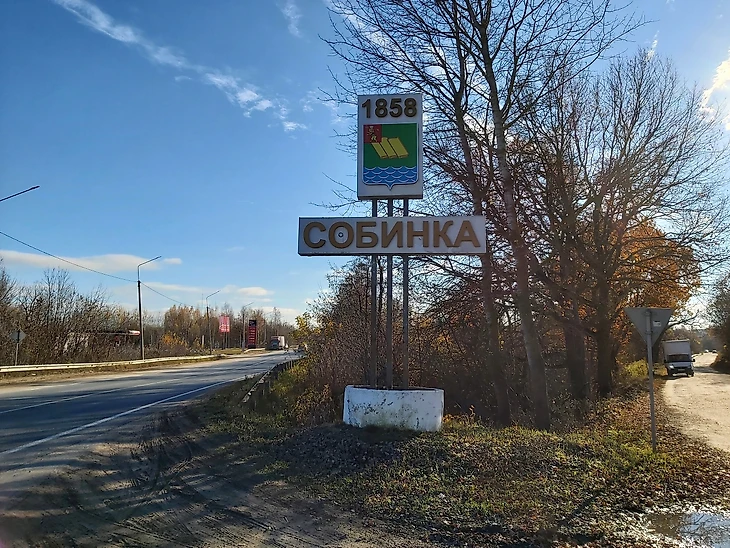 Я тоже мог поехать в Собинку на маршрутке, но прекрасная погода (а для конца октября погода действительно была прекрасная) благоволила к пешей прогулке. Вот только никакого пешеходного маршрута от Лакинска до Собинки предусмотрено не было и идти пришлось вдоль автомобильной дороги в надежде не встретить по пути какого-нибудь местного лихача. Удовольствие так себе.