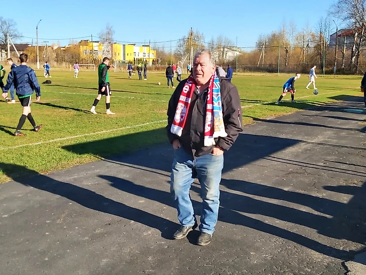 Поздороваться к болельщику подходит вратарь собинского «Труда» Алексей Киселев.