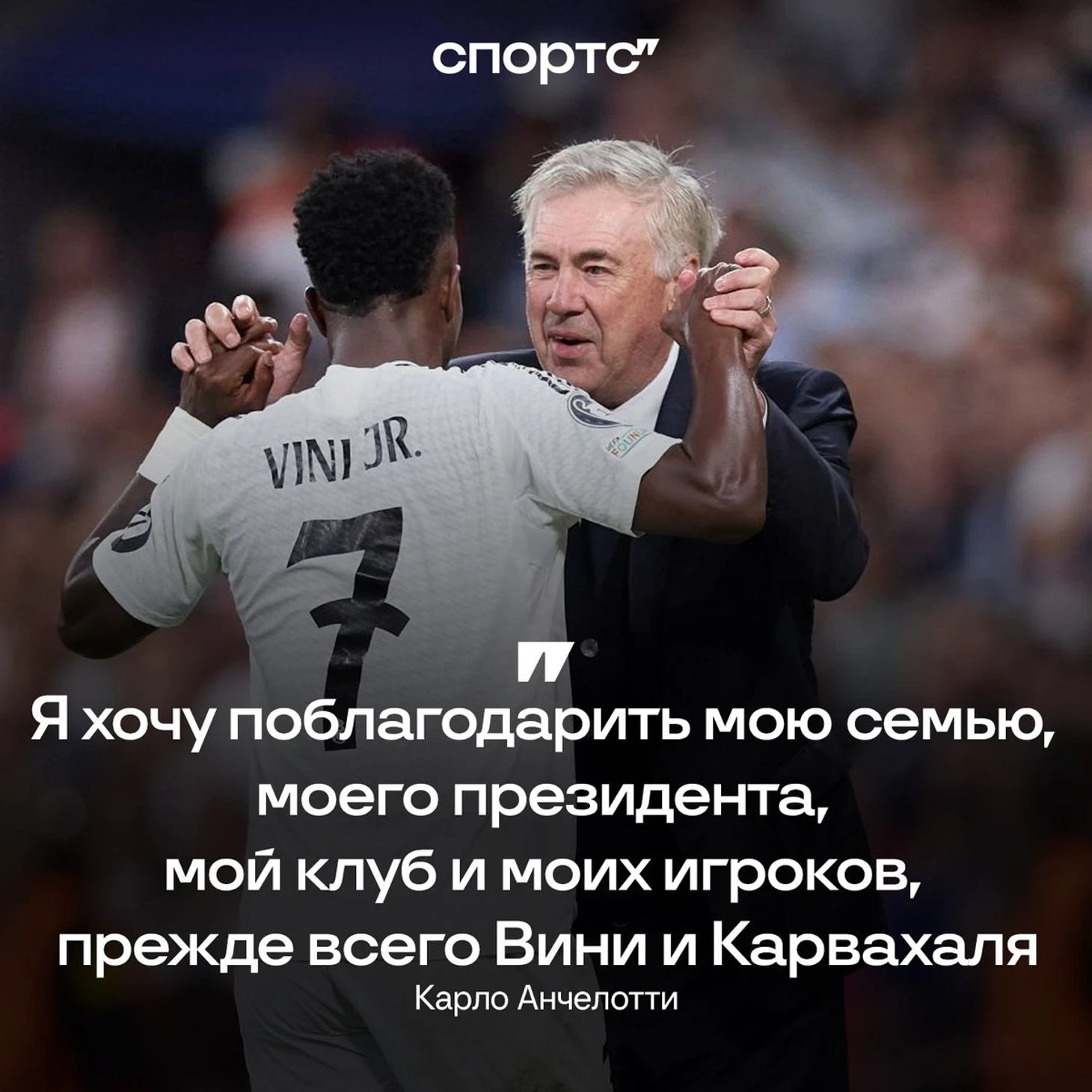 Анчелотти поблагодарил «Реал» за награду тренеру года – и выделял Винисиуса с Карвахалем