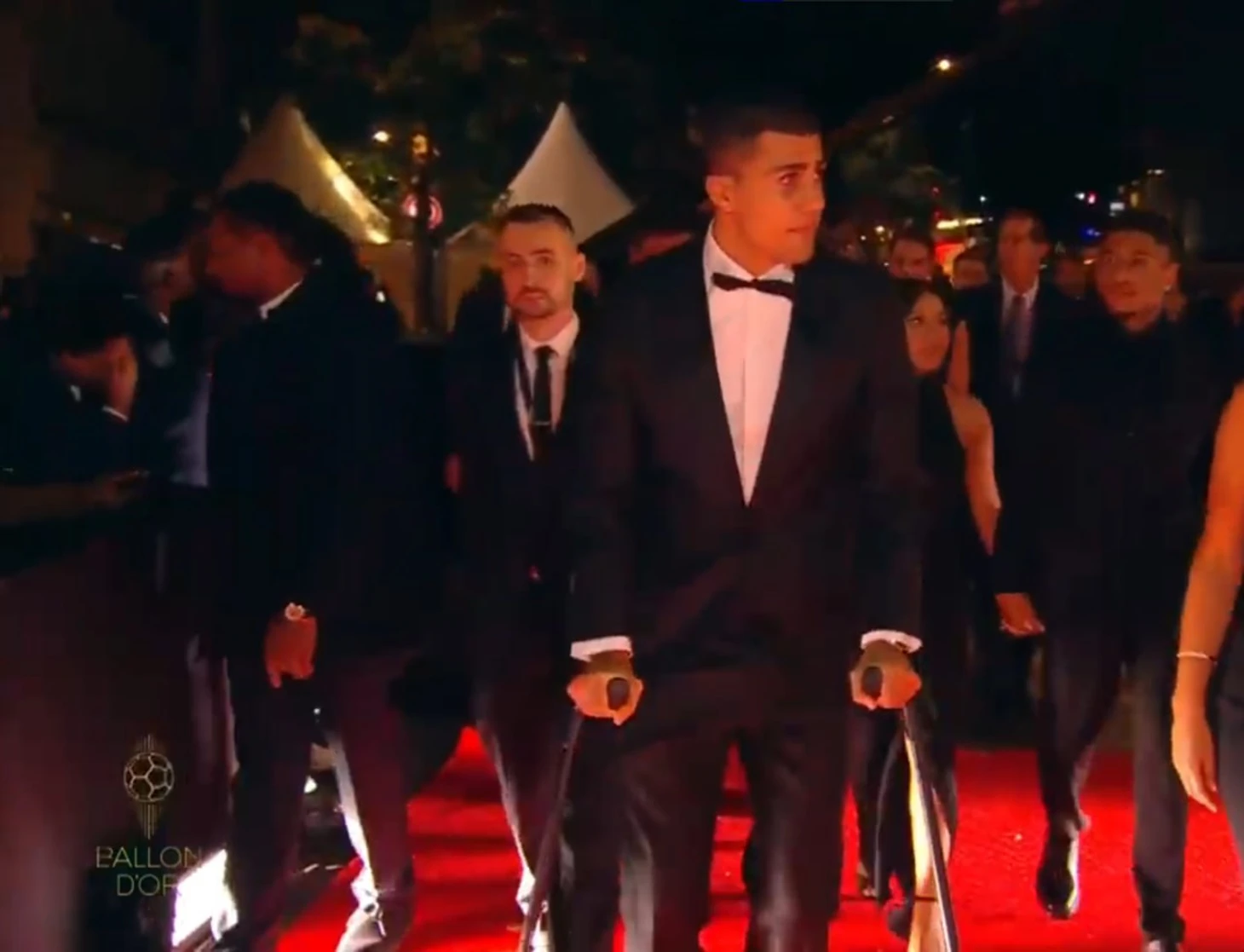 Испанец только в начале восстановление после травмы крестов. Вот так он приехал на церемонию.