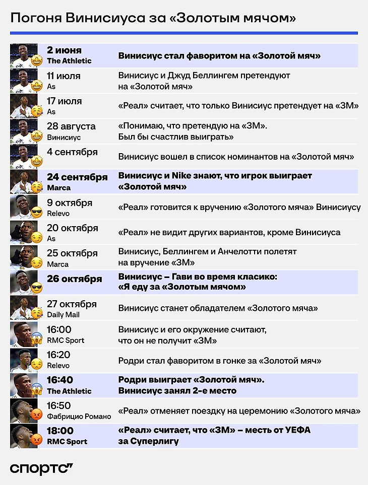 Винисиус был фаворитом пять месяцев – после победы в ЛЧ. Таймлайн пути и разочарования