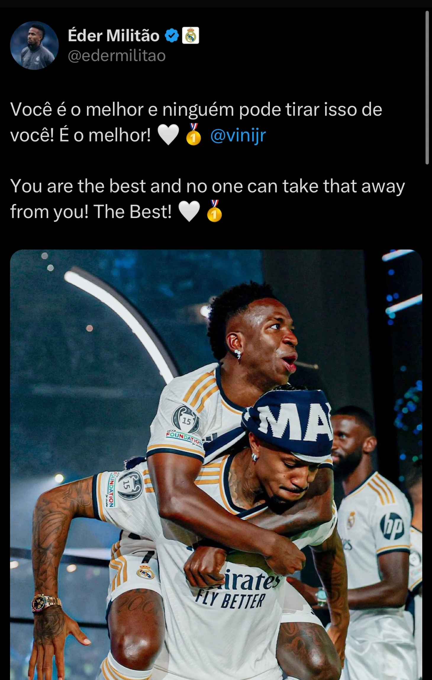 Эдер Милитао: «Ты лучший и никто у тебя этого не отнимет! Лучший!».