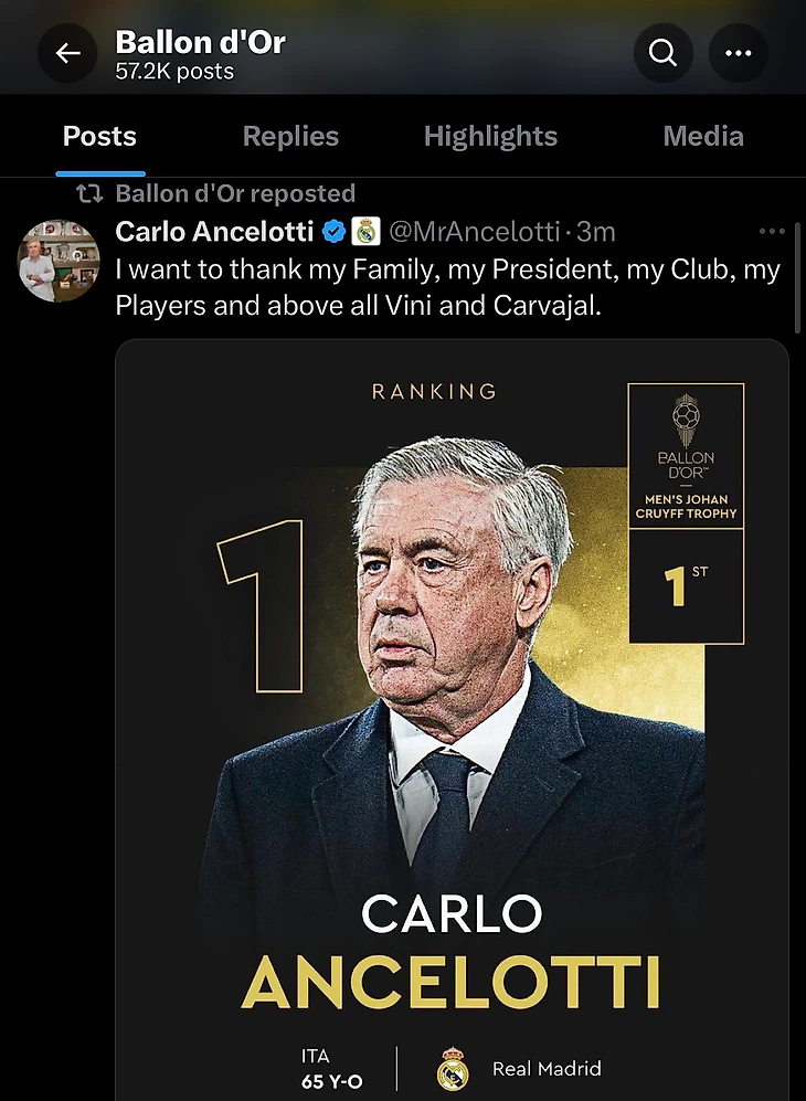 Карло Анчелотти: «Я хочу поблагодарить мою семью, моего президента, мой клуб, моих игроков и прежде всего Винисиуса и Карвахаля».