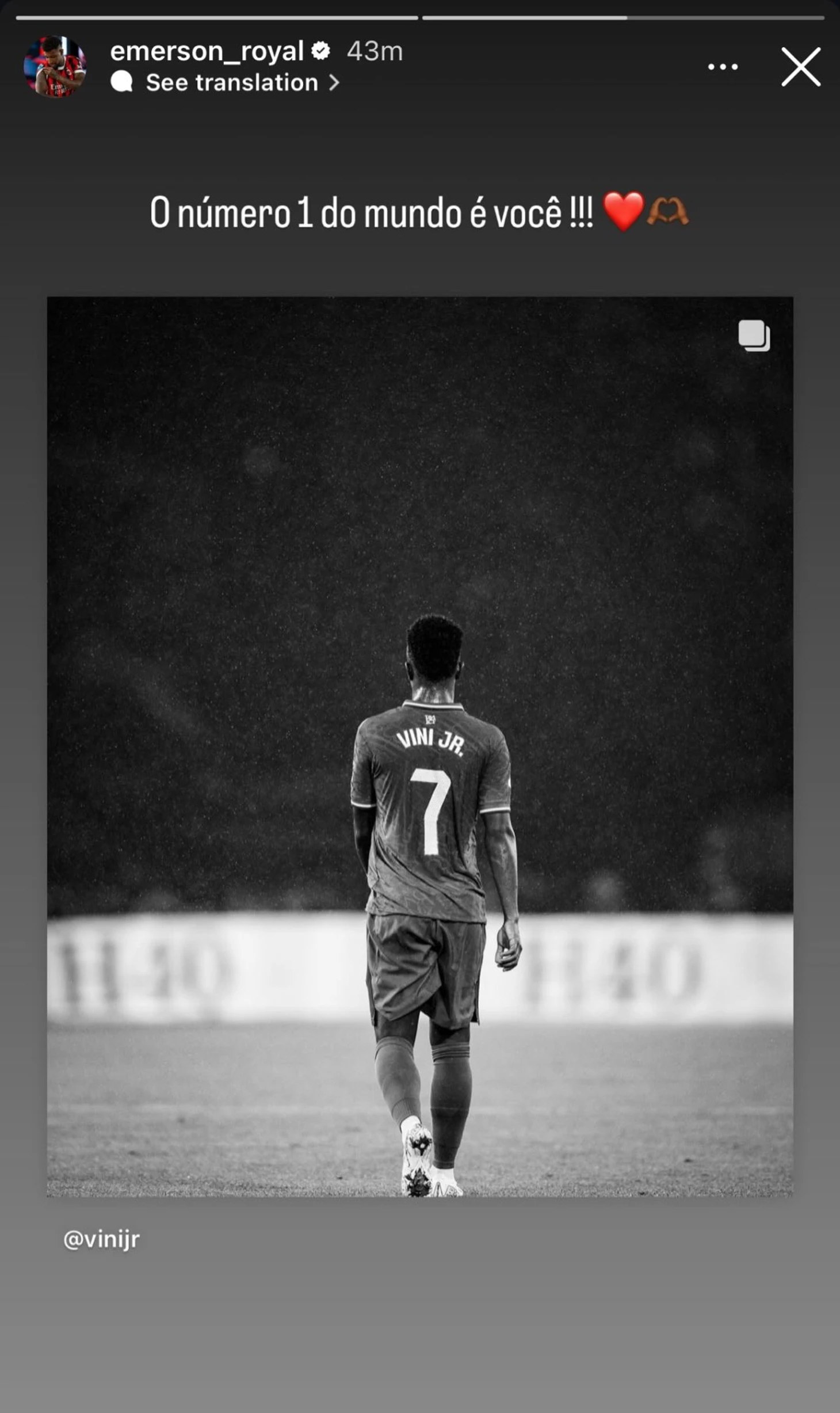 Я помню, как Вини говорил, что мечтает увидеть, как вся Бразилия его поддерживает. Это и произошло сегодня! Ты гигант, ты лучший в мире, парень! И ни один трофей этого не изменит. Иди вперед и не замолкай! Мы все вместе».