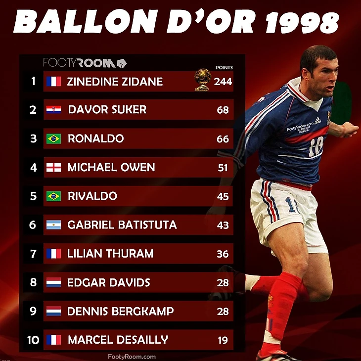 Для меня ценность Золотого мяча упала до нуля в 1998 году. Споры вокруг 1995 и 1996 прошли как-то стороной, а вот события 26-летней давности помню прекрасно.
