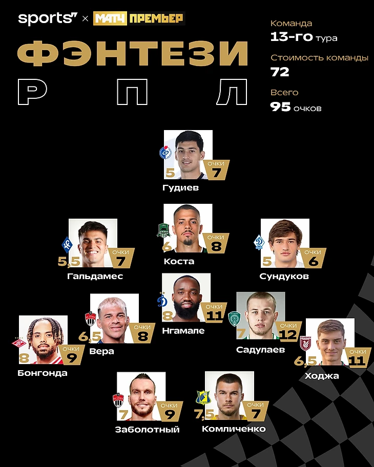 Сборная 13-го тура фэнтези-турнира РПЛ.