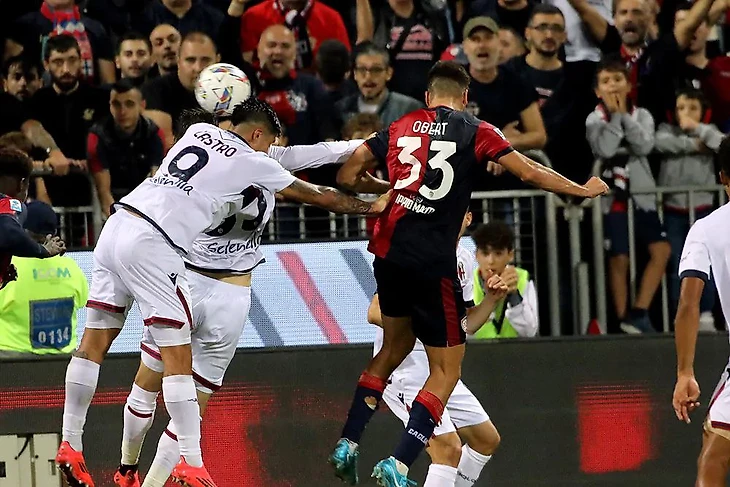 Первые минуты матча с «Кальяри» «Болонья» страдала, и только когда ее игроки атаки, в частности, Одгор, поняли, что надо располагаться ближе к Кастро, когда тот вылавливает очередной пас верхом из глубины, у нее начало что-то получаться впереди. До того «Кальяри» уверенно придушивал прессингом, БФК действительно вынуждена была играть дальними забросами, а комбинационные действия удалось наладить лишь с 20-25'.
