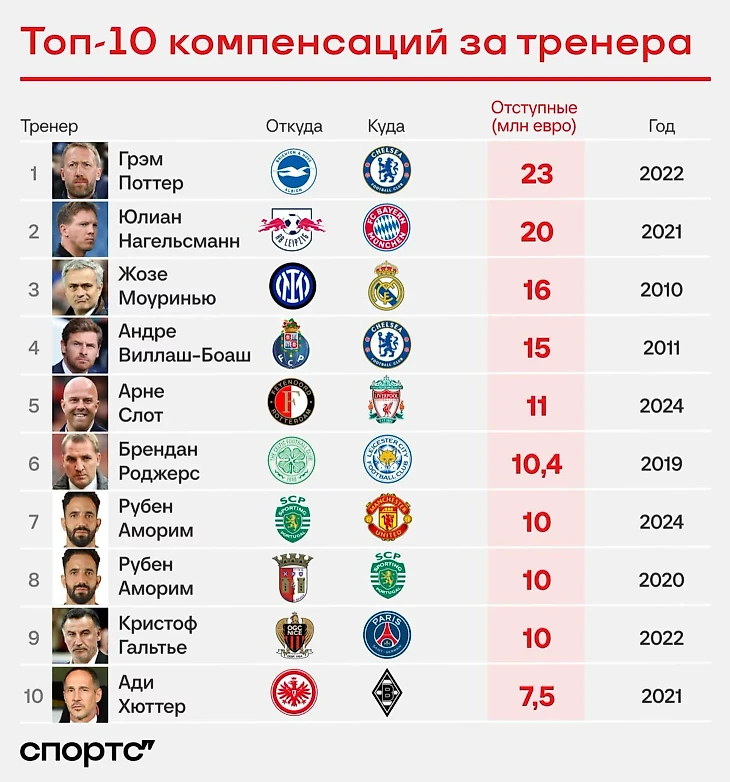 ● В сумме за Аморима-тренера заплатили 20+ млн евро отступных.