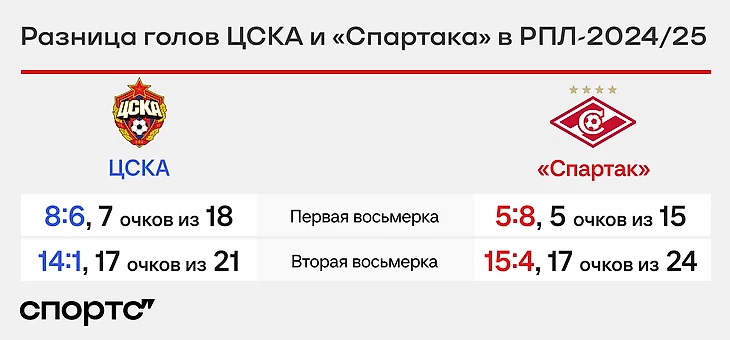 Несмотря на хорошие показатели, ЦСКА и «Спартак» слабы в матчах с командами из первой восьмерки.