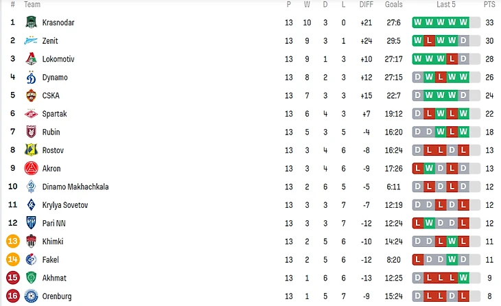Ну и заключительным матчем 14-ого тура станет встреча первой и последней команды чемпионата. «Краснодар» имеет отличную возможность продлить невероятную победную серию до 11 матчей. А для нового тренера «Оренбурга» Владимира Слишковича, этот матч будет тяжелейшей проверкой на старте его работы в новом клубе.