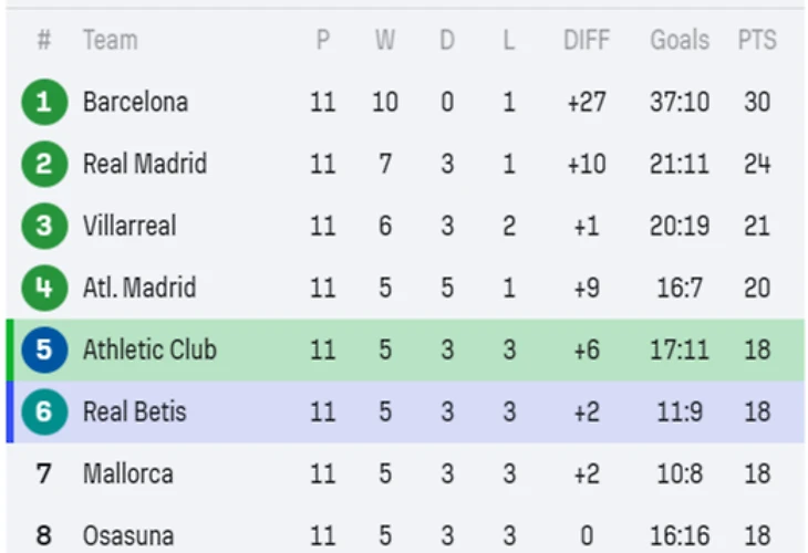 Соседи в турнирной таблице «Атлетик» и «Бетис» проведут встречу, победа в которой даст возможность находиться в 4-ке лидеров как минимум до следующей недели. За всю историю этого противостояния хозяева одержали 11 побед, а гости были сильнее в 5 мачтах, так же 4 раза очки были поделены на пополам.
