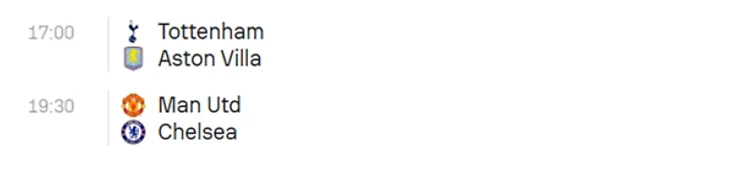 В воскресенье нас ждут еще более горячие вывески. «МЮ» – «Челси» и «Тоттенхэм» – «Астон Вилла».