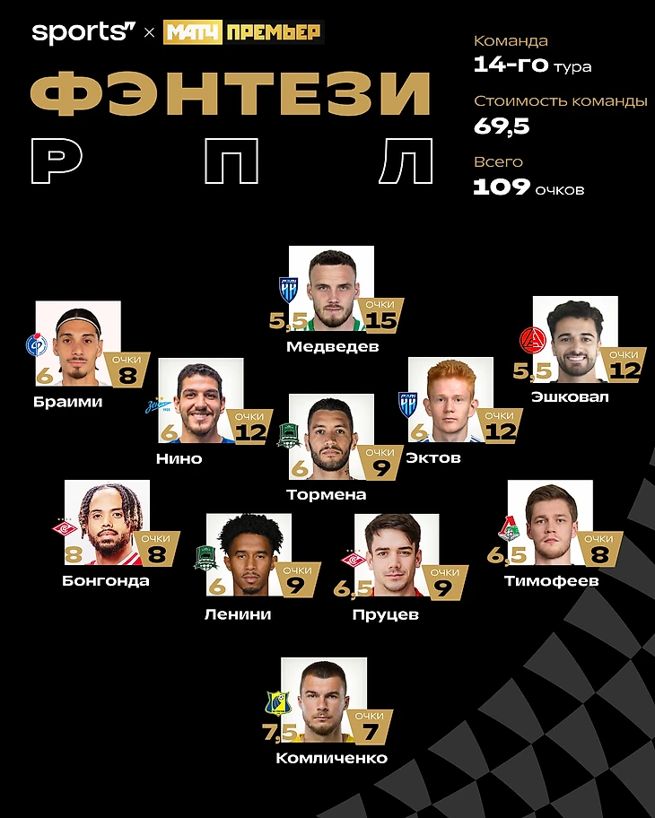 Сборная 14-го тура фэнтези-турнира РПЛ.