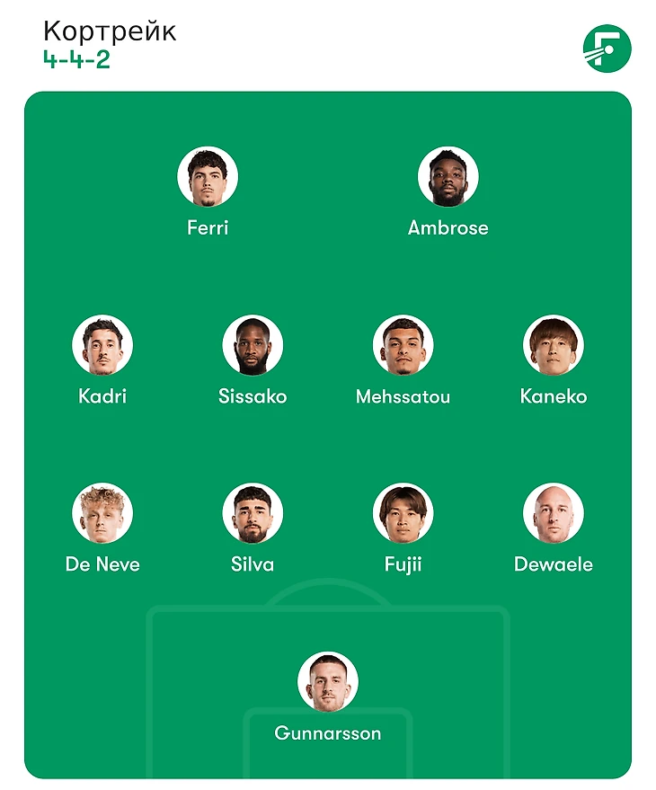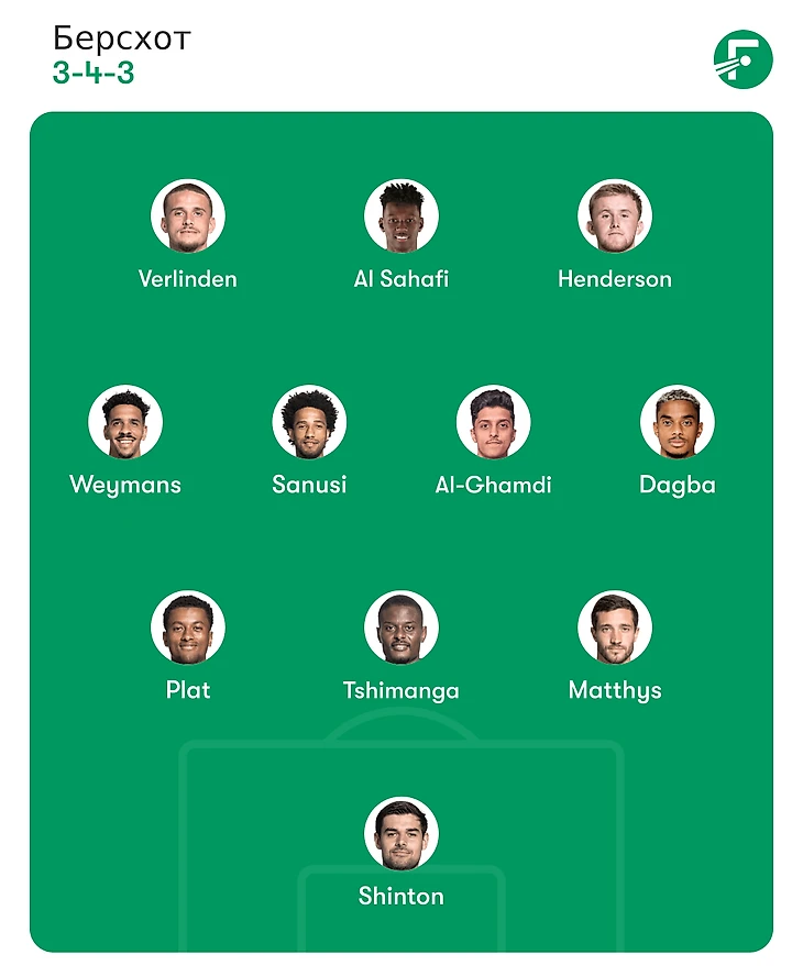 А теперь пробежимся по всем клубам. Для каждого я нарисовал приблизительный стартовый состав. Билдер – с Fotmob, как и статистика. У нескольких клубов было трудно выбрать основную схему: либо просто от тура к туру варьируются расстановки, либо в какой-то момент случился тактический перелом. Например, «Берсхоту» можно было бы поставить 4-4-2, потому что он на нее недавно перестроился, а «Кортрейку», напротив, какую-нибудь схему с тройкой ЦЗ из начала сезона.