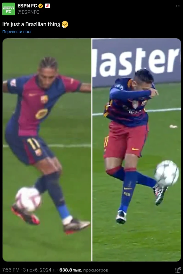Во время игры с «Эспаньолом» Рафинья продемонстрировал трюк, который когда-то исполнял Неймар в «Барсе»: