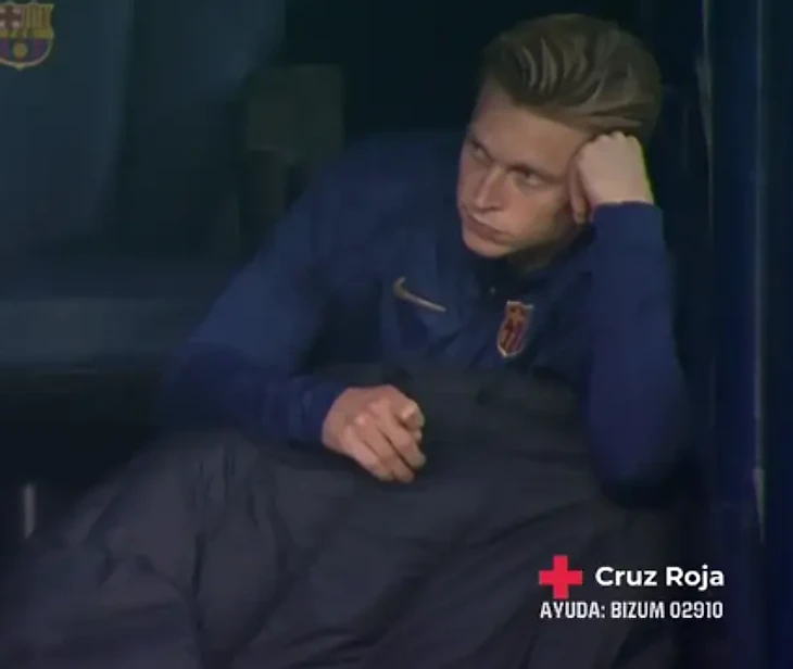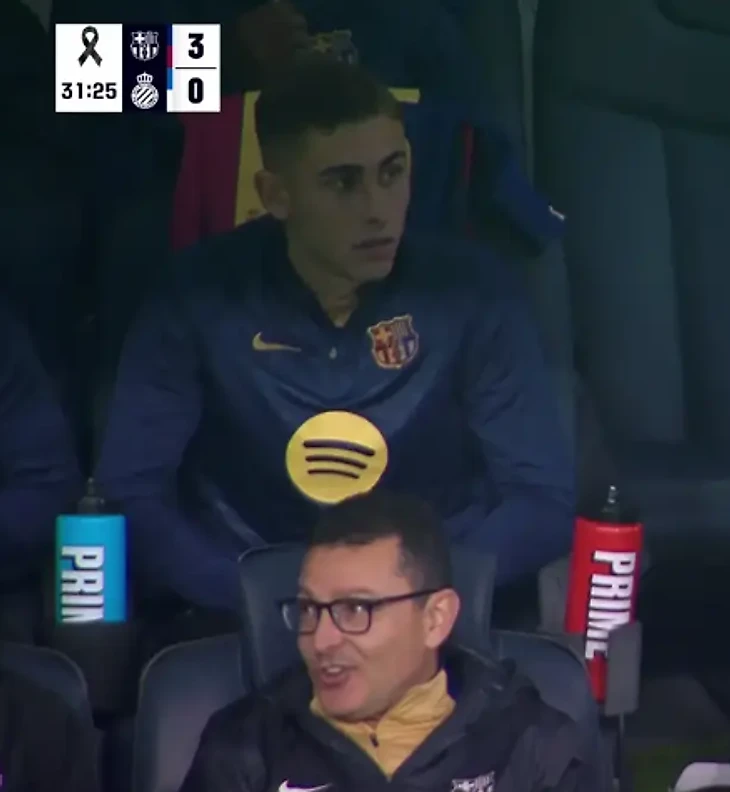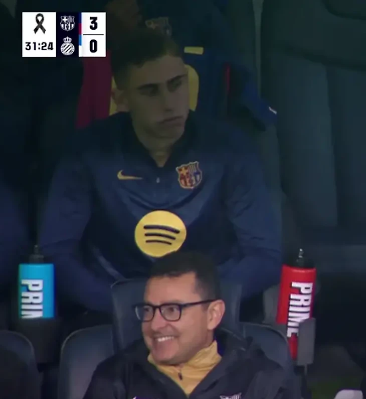 На камеру попала реакция Френки де Йонга и Фермина Лопеса, которые находились в запасе, на третий гол.