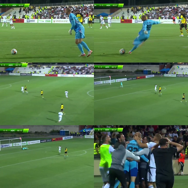 Дальше «Ноа» получил в соперники АЕК. Казалось, что известный афинский клуб без проблем одолеет скромный «Ноа». За АЕК играли Стракоша, Вида, Нордин Амбрабат, Ламела и Орделин Пинеда. Забавно, что стоимость последнего превышала весь состав «Ноа». Мексиканец – 7 млн евро, состав «Ноа» – 6,9 млн евро.
