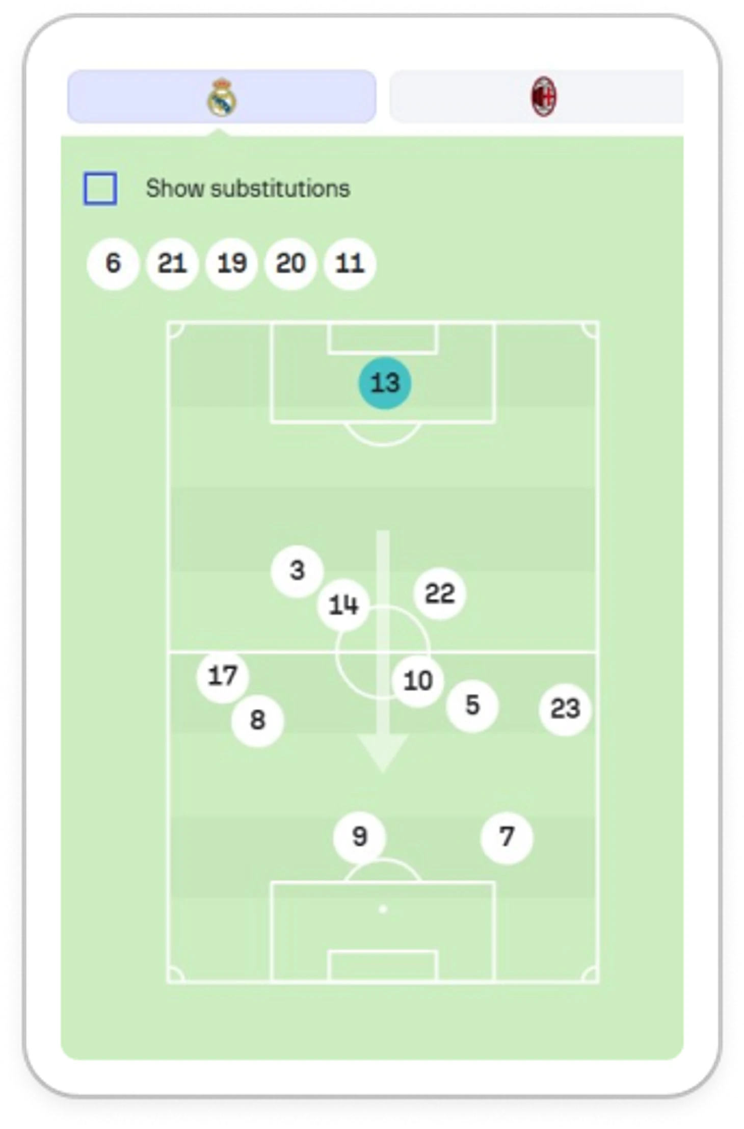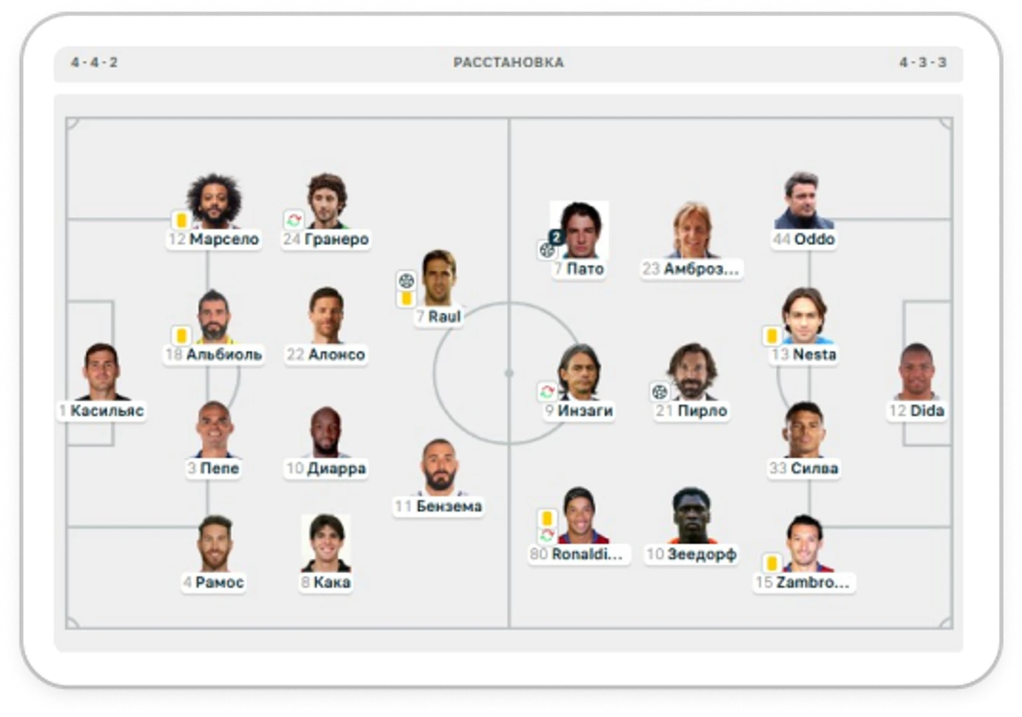 На тренерском мостике у «Милана» и «Реала» стояли Леонардо и Пеллегрини. Составы выглядели вот так: