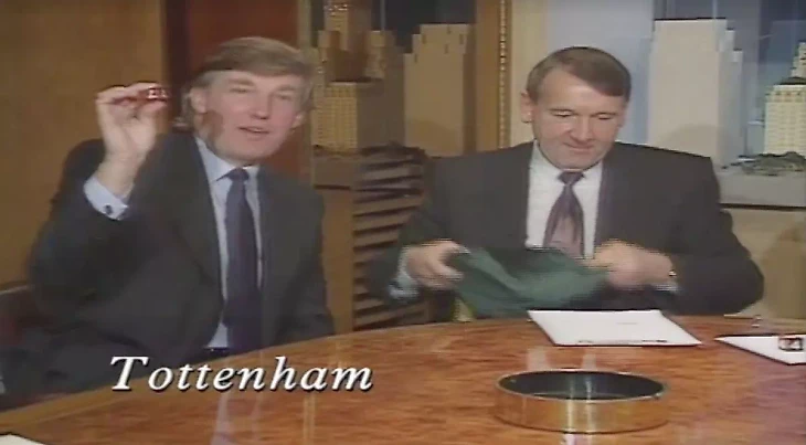 Трамп появился в этом выпуске на три минуты, чтобы помочь с жеребьевкой кубка английской лиги. Случилось же это в огромной переговорной комнате, расположенной на вершине 58-этажной «Башни Трампа» на Манхэттене. «Неплохая у вас площадка», — сказал хозяину Гривз. «В последний раз я видел такую в «Дуг Эллисе» [спортивный центр в Бирмингеме]. Знал ли Трамп, что Дуг Эллис был президентом «Астон Виллы» на протяжении 30 лет? «Я подозреваю, что он понятия не имел, о чем говорил Джимми», говорит годы спустя один из участников той жеребьевки (и секретарь Лиги в те годы) Дэвид Дент.