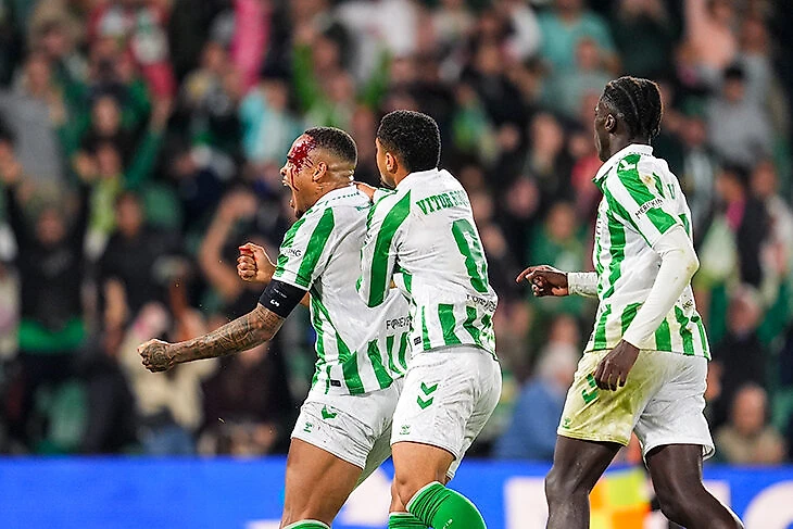 ● «Бетис» вырвал победу у словенского «Целе» на 90+4 (2:1). Хуанми забил в самой концовке, но ярче отметили первый мяч. Защитник Натан праздновал весь в крови – рассек лицо, вскоре его заменили.