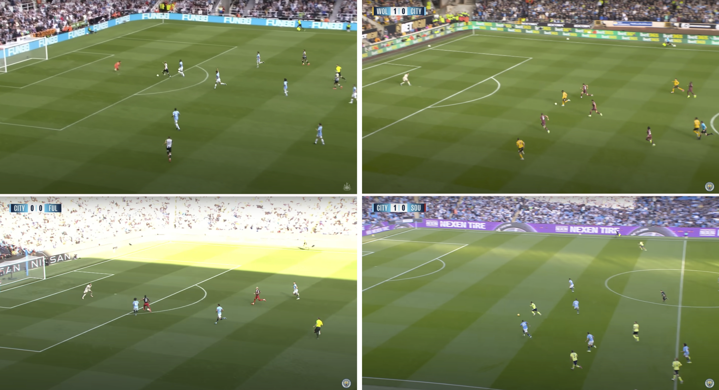 Речь про структуру позиционных атак. В этом сезоне она сильно отличается от всех предыдущих версий «Сити». Главное изменение – количество игроков, которые находятся в атаке. В предыдущих сезонах их было пять.