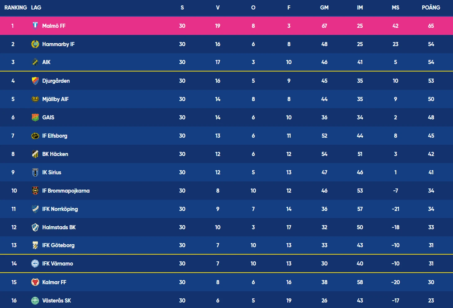 Один из величайших клубов Швеции, забывший о победах в чемпионате Швеции после 2007 года, в последних двух сезонах борется за выживание и второй раз чудом спасается от стыковых матчей.