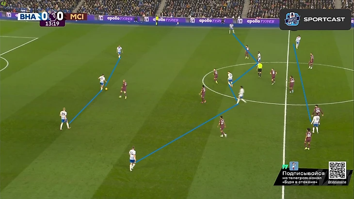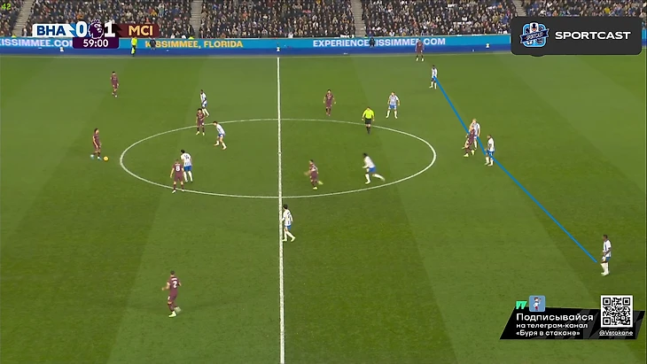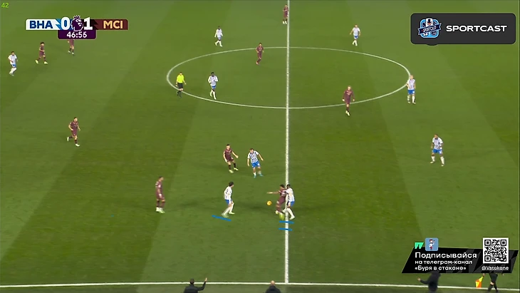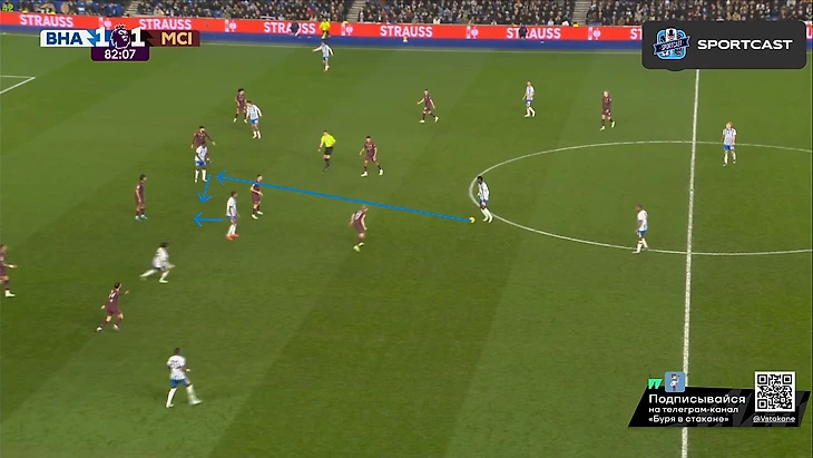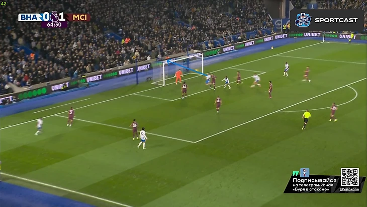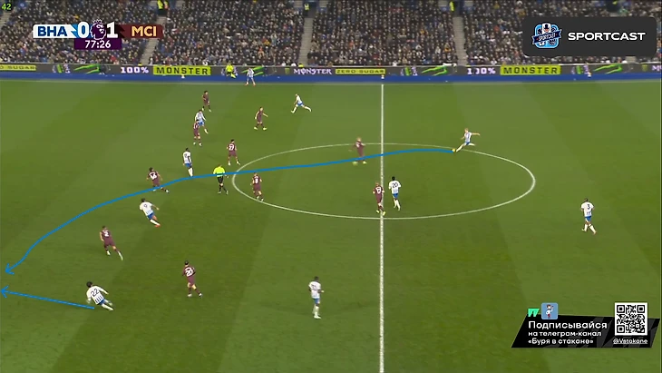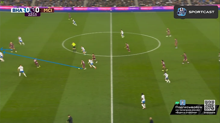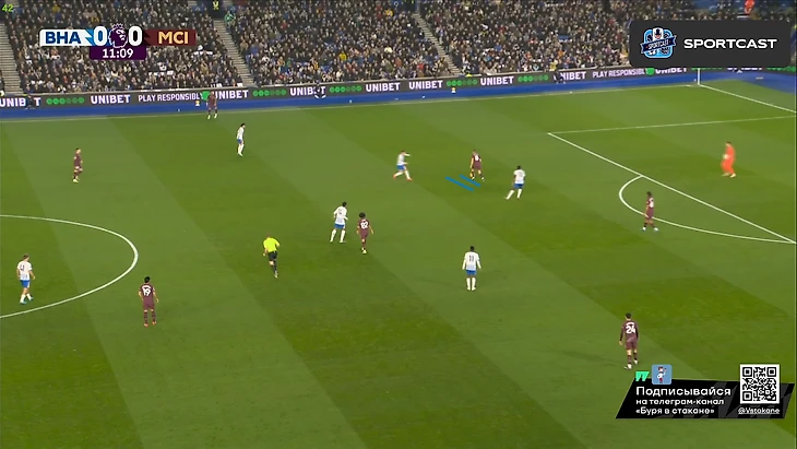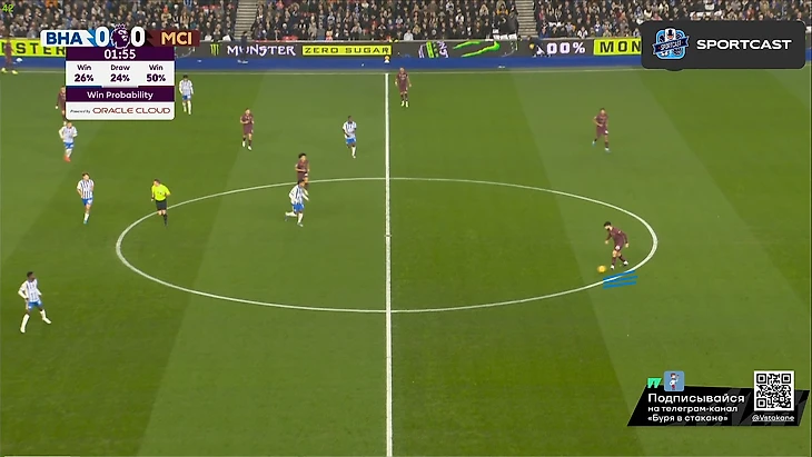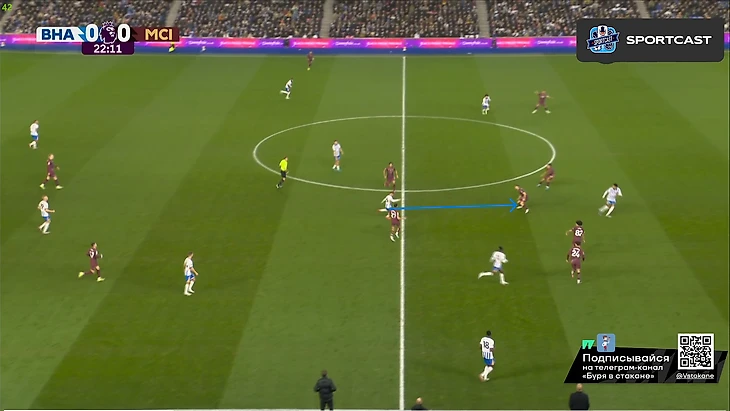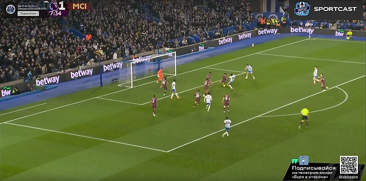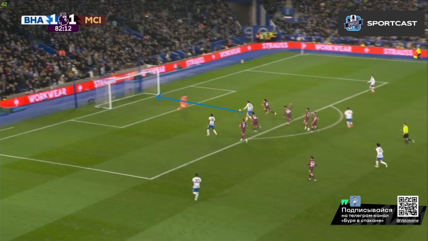 Здесь все еще проще: великолепный Карлос Балеба, по сути, сделал всю атаку, когда 9 из 10 полевых игроков соперника были за линией мяча, просто благодаря одному феноменальному пасу между двумя линиями. Вообще, выход Карлоса в перерыве - пожалуй лучшая замена Хюрцелера сегодня, ведь в первой половине «чайкам» жутко не хватало грамотного выхода из под прессинга соперника, который зачастую начинался уже ближе к центру поля, но зато был очень эффективен, и как главный пример - гол «горожан» именно после ошибки Хиншелвуда в передаче, однако Айари, особенно в конце тайма, был еще хуже Джека и своим огромным количеством брака фактически не дал хозяевам создать еще хотя бы 1 момент до перерыва, поэтому эта замена более чем напрашивалась и потом великолепно оправдала себя Ну а дальше в этом эпизоде Жоау Педро оставалось лишь грамотно качнуть молодого и Пьюзи и дать в коридор, который так любезно, в очередной раз, образовали Льюис и Гвардиол, что как будто мы к этому уже привыкли, а О'Райли просто не промахнулся. Концовка же вышла на редкость пресной, особенно если сравнивать с тем же «Сити» прошлого сезона, когда они настолько спокойно дожимали «Шеффилд» в гостях, и несмотря на столь поздний пропущенный, тогда «горожане» не тушевались и просто шли убивать соперника, хотя тогда был далеко не самый удачный отрезок (тоже осень, которая у подопечных Пепа традиционно скомканная). Понятно, что «Брайтон» - даже близко не «Шеффилд» по уровню, но все рано, на последних минутах (а после второго пропущенного их было аж 16) «Сити» вообще не наваливался на ворота соперника и реального шанса на спасение, у них, по сути, и не было. Из интересного в тот промежуток лишь провальность выходов Де Брюйне и Бернарду, ведь по Кевину было буквально видно, что он все еще не долечился, и на поле просто не мог найти места себе, да и точность передач 67% для такого мастера - непозволительно мало. Бернарду же просто был фактическим дублером Фодена на финальном отрезке, причем располагался он пониже, поэтому и толку от него было немого, хотя пару раз реально неплохо продвигал мяч.
