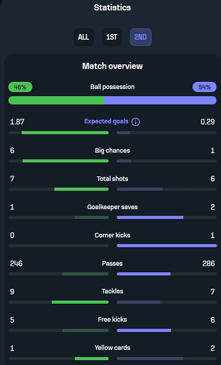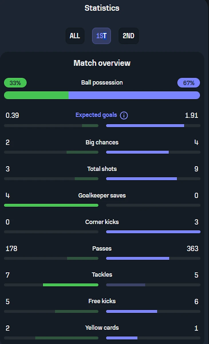 Еще интересна позиция Рюттера, (подчеркнут 2 чертами) который номинально (да и не только) форвард, однако во второй половине тайма регулярно оказывался вторым правым защитником при том, что Нуньеш сегодня был далеко не самым опасным в атаке у «Сити», ведь на противоположенном краю Савиньо буквально измывался над Эступиньяном, а тот отвечал лишь бесконечными фолами, и чудом закончил матч без желтой. Хотя, справедливости ради, Первису тоже оказывали нехилую поддержку Игор Жулио и даже Митома, т.к в обороне он был откровенно плох, пусть и компенсировал эти провалы игрой в нападении, где дважды создал голевые моменты для партнеров навесами, правда ни один из них не был реализован. Но мой любимый момент по этому поводу уже из второго тайма, когда эквадорец вместе с, вновь пришедшим на помощь, Митомой едва не запинали бедного Савиньо, однако и там желтая не была показана никому