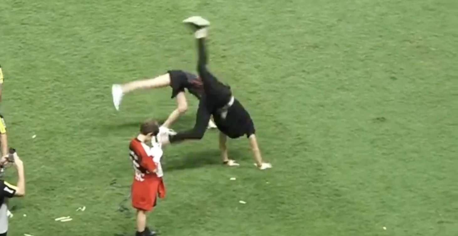 А сам Луис после игры мило праздновал победу на поле вместе с дочкой. Обнимался, крутил сальто (дочь занимается гимнастикой) и просто радовался победе.