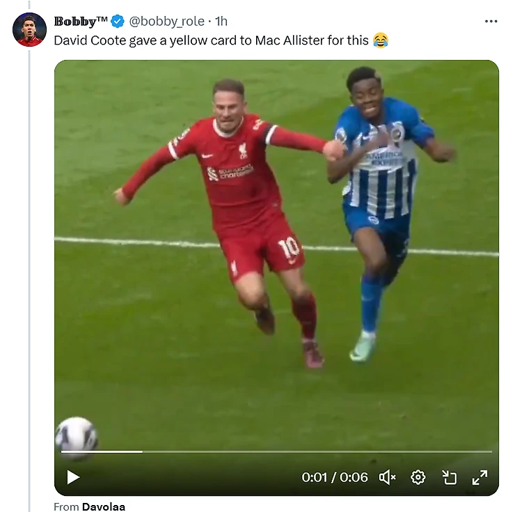 💭 «Дэвид Кут дал Мак Аллистеру желтую карточку за это касание».